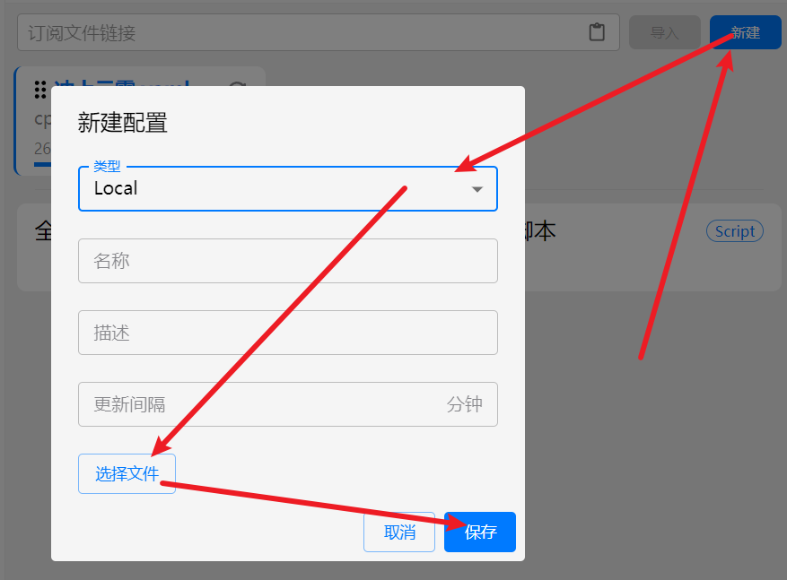打开Clash Verge,点击左边菜单 订阅 选择 新建 类型选择 Local 选择文件后保存就行了